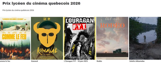 Par NAIMA KARABAGHLI, publié le vendredi 6 février 2026 06:14 - Mis à jour le vendredi 6 février 2026 06:16Le temps d'une immersion de 5 films dans le cinéma québécois, les élèves d'option cinéma de 1ère et de Terminale deviennent jury du Prix Lycéen du Cinéma Québécois. -